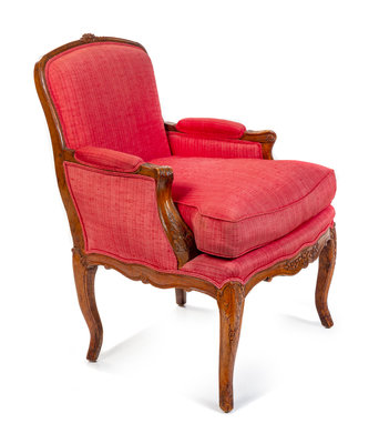 A Continental Fruitwood Bergere Height 35 1/2 x width 22 inches.