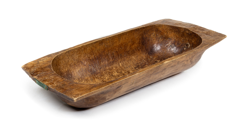 A Large Provincial Carved Wood Dough Bowl Height 7 x width 44 x depth 17 inches.