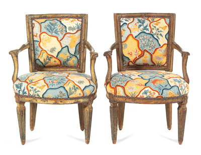 A Pair of Italian Painted Armchairs Height 34 inches.
