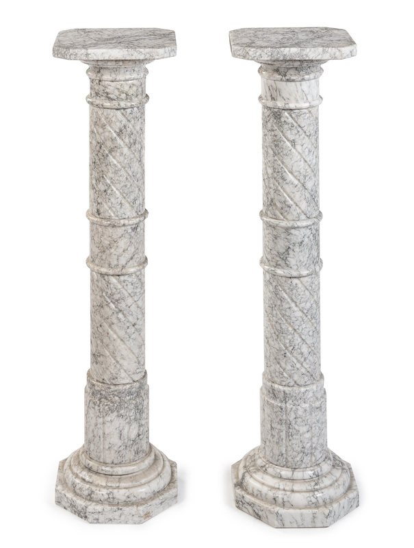 A Pair of Continental Marble Pedestals Height 39 1/2 inches.