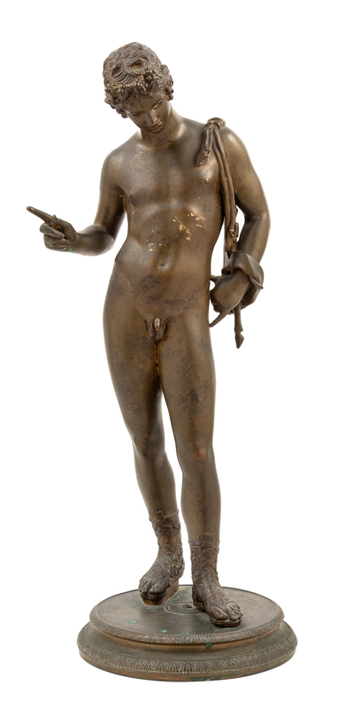 A Continental Bronze Figure of Narcissus Height 25 inches.