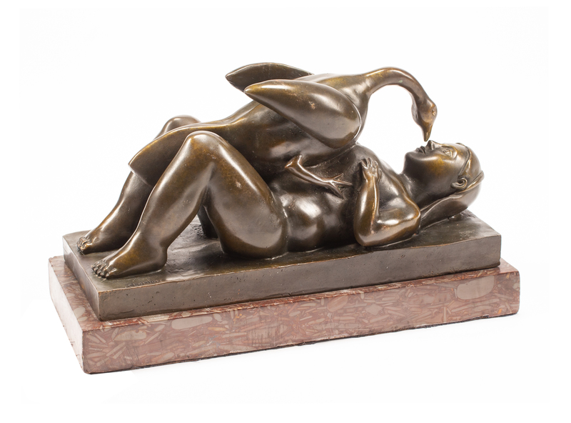 depicting Leda and the Swan, with a spurious Clodion signature.