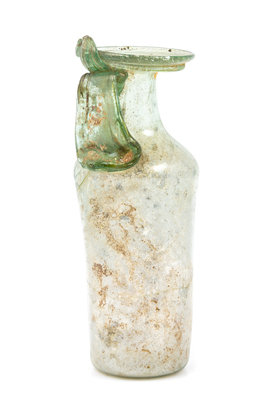 A Roman Glass Unguentarium Height 5 1/2 inches.