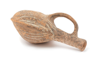 A Mediterranean Terra Cotta Vessel Height 5 1/2 inches.