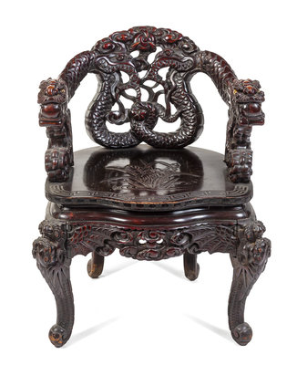 A Japanese Carved Armchair Height 33 inches.