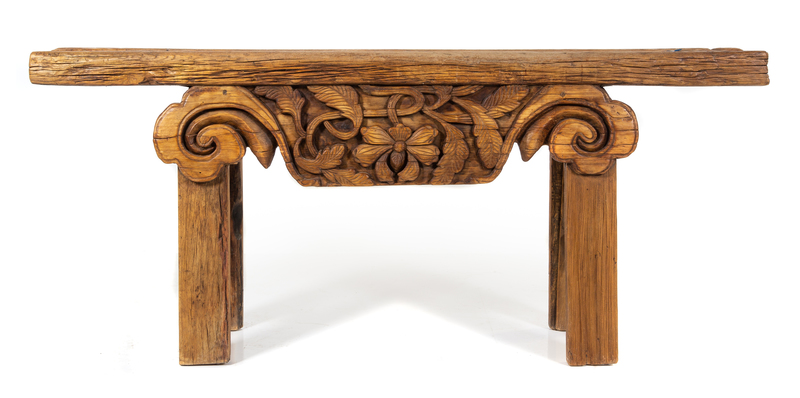 A Chinese Softwood Altar Table Height 37 1/2 x width 87 1/2 x depth 13 1/4 inches.