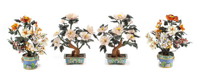 Two Pairs of Chinese Hardstone Models of Trees Height of tallest 15 inches.