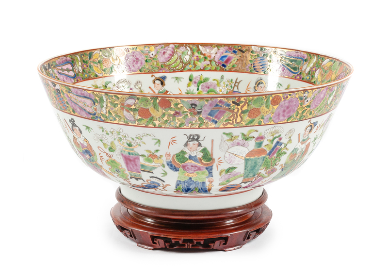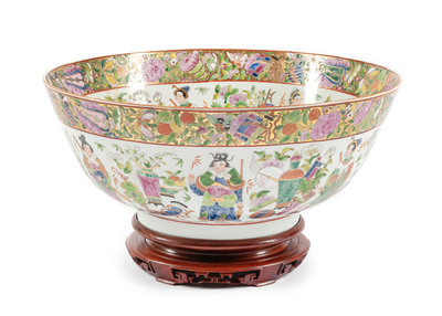 A Rose Canton Porcelain Bowl Diameter 16 1/2 inches.