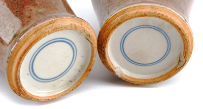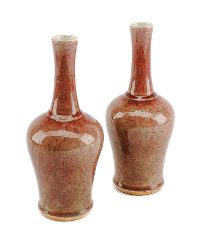 A Pair of Chinese Peachbloom Porcelain Vases Height 9 inches.