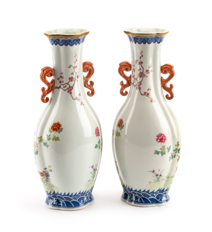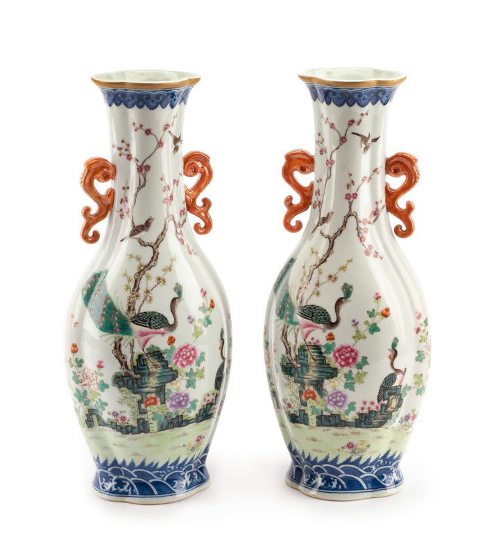 A Pair of Chinese Export Style Porcelain Vases Height 14 inches.