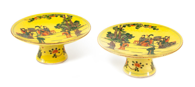 A Pair of Chinese Porcelain Tazze Diameter 8 1/4 inches.