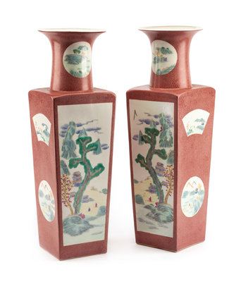 A Pair of Chinese Porcelain Vases Height 23 inches.