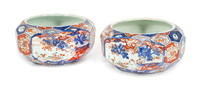 A Pair of Imari Palette Porcelain Bowls Diameter 10 1/4 inches.