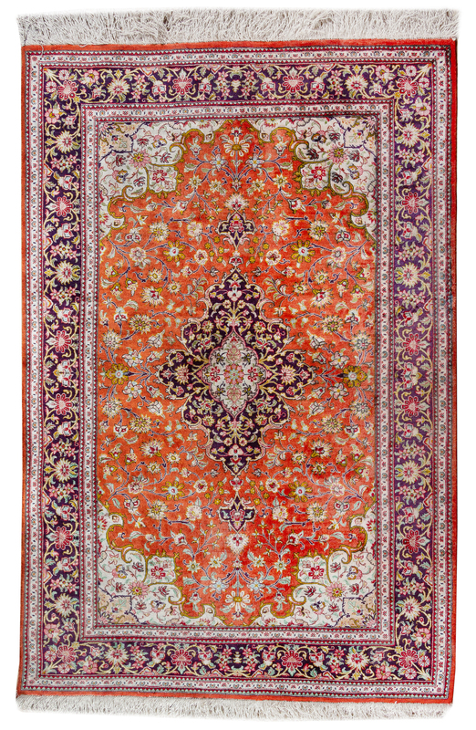 A Persian Silk and Wool Rug 4 feet 10 inches x 3 feet 4 inches.