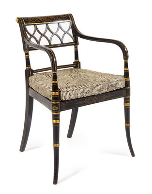 A Regency Painted and Parcel Gilt Armchair Height 32 inches.