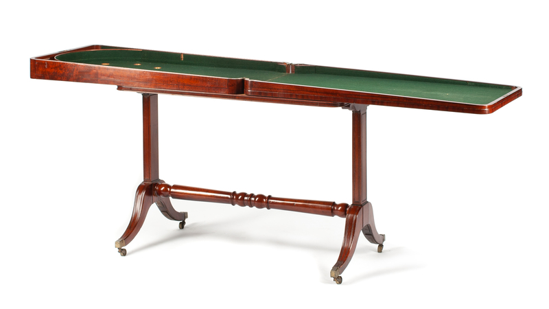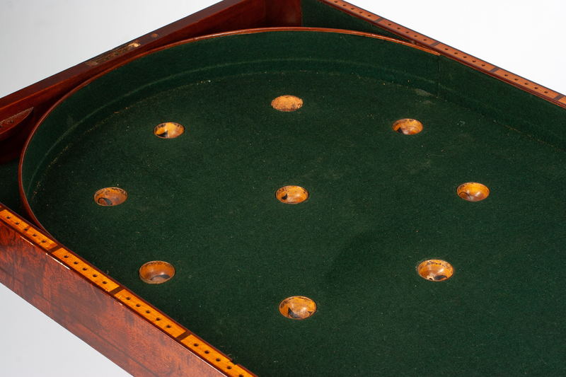 A Regency Mahogany Bagatelle Game Table Height 30 1/2 x width 36 x depth 20 inches.