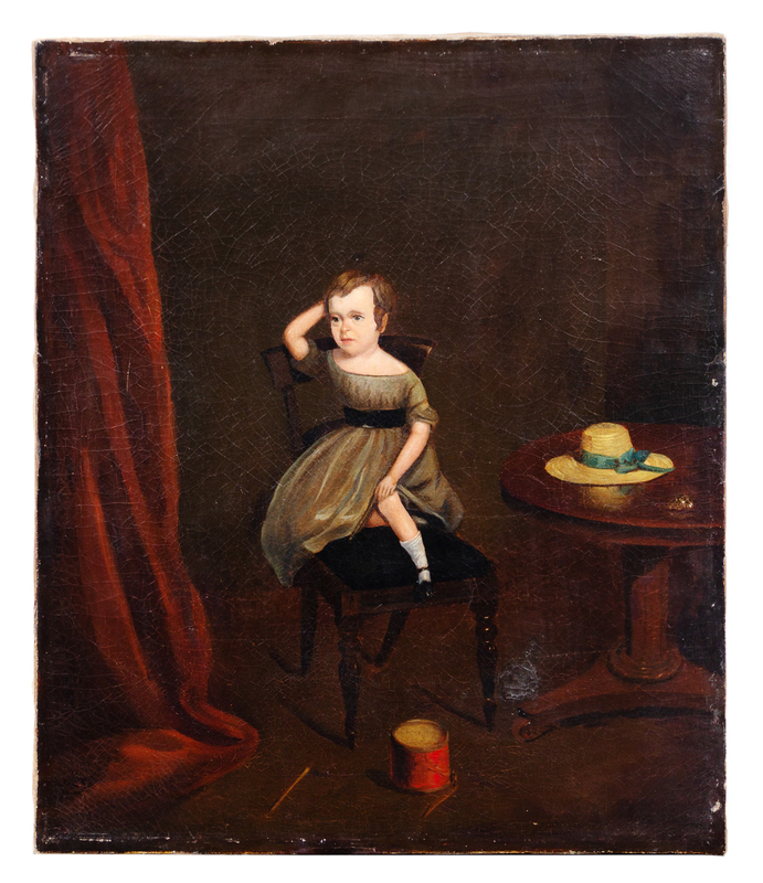 English School, (Early 19th Century), Child Seated on a Chair with a Hat on a Table