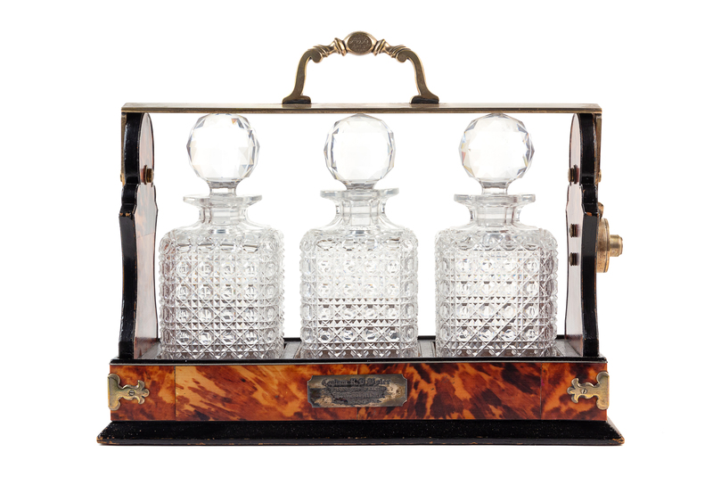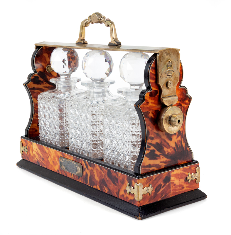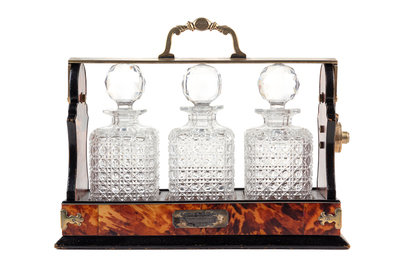 A Victorian Tortoise Shell Veneered Tantalus Height 13 x width 16 1/4 x depth 6 1/8 inches.