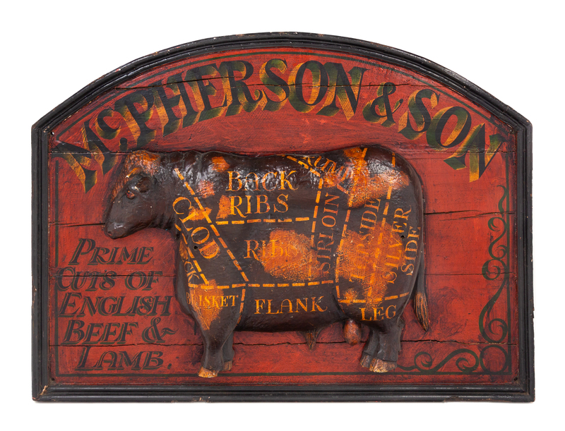 An English Polychromed Butcher's Sign Height 27 1/2 x width 36 inches.