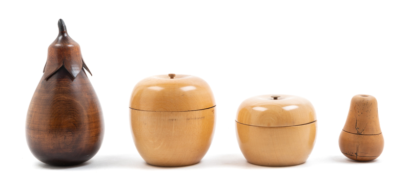 Four English Fruitwood Fruit-Form Boxes Height of tallest 5 1/4 inches.