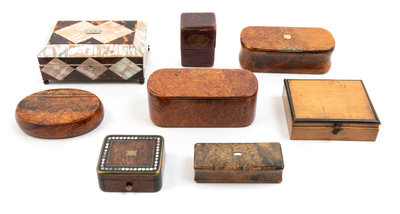 A Collection of English Boxes Width of first 3 1/4 inches.
