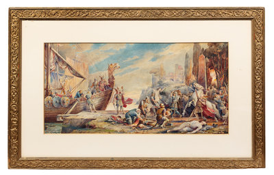 T. Kittilsen, (Early 20th Century), Viking Scene with Longboat, 1906