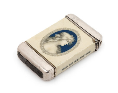 An American Celluloid and Mixed Metal Advertisement Match Safe Height 2 3/8 inches.