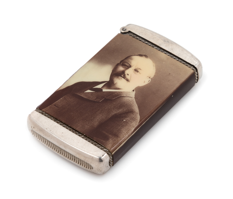 An American Celluloid and Mixed Metal Advertisement Match Safe Height 2 5/8 inches.
