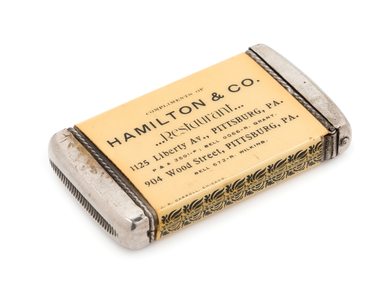 the sides marked Compliments of Hamilton & Co. Restautant... Pittsburgh, PA.