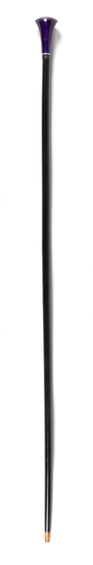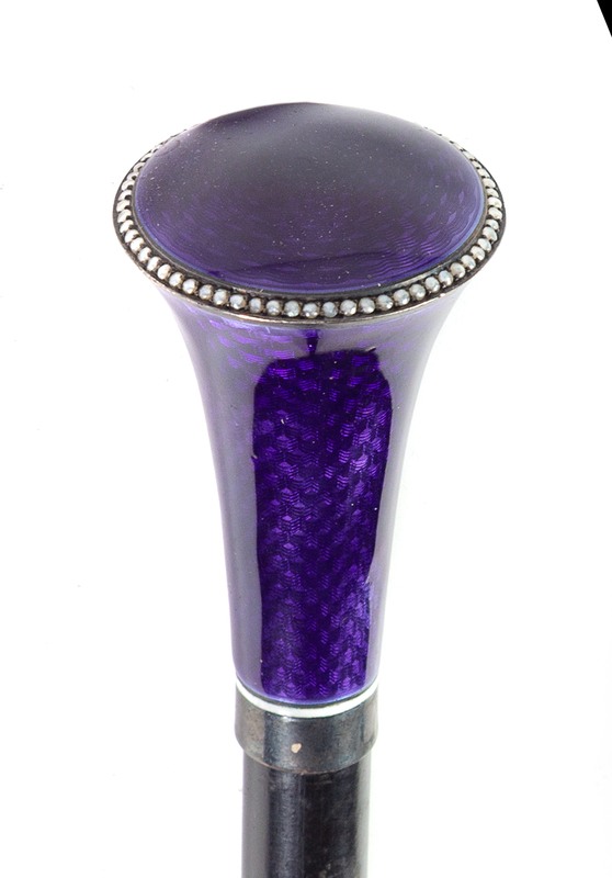 the guilloche enameled handle above an ebonized shaft ending in a horn ferrule.
