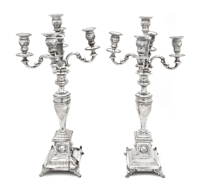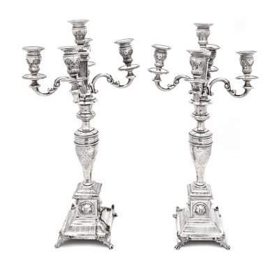 A Pair of Austro-Hungarian Silver Candlesticks, Maker's Mark G&S, Vienna, Late 19th/Early 20th Century, each baluster form stem issuing