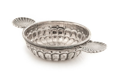 An Italian Silver Wine Taster, Buccellati, Milan, 20th Century, having twin scallop-form handles and a lobed body.