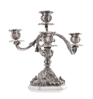 An Italian Silver Four-Light Candelabrum, Pradella Ilario for Mario Buccellati, Milan, 20th Century, the twist-fluted baluster form ste