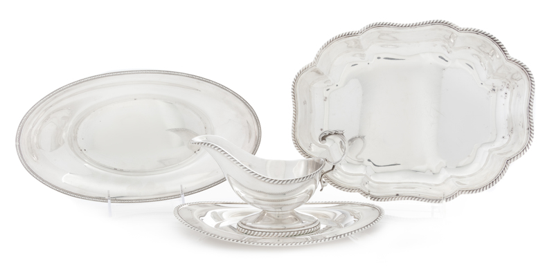 A Group of Four American Silver Holloware Articles, Various Makers, 20th Century, comprising a sauce boat, two bread dishes and a veget