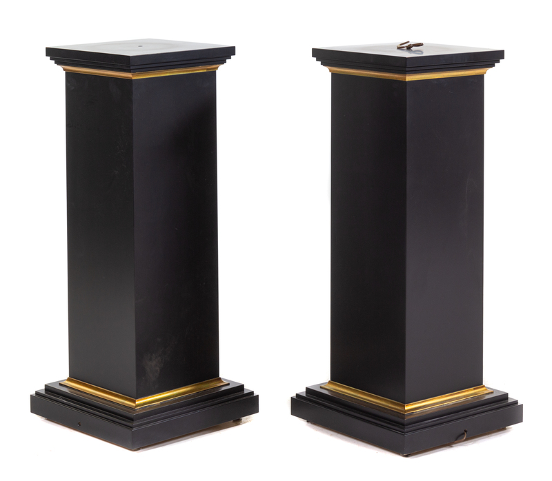 A Pair of Parcel Gilt Ebonized Pedestals Height 40 inches.