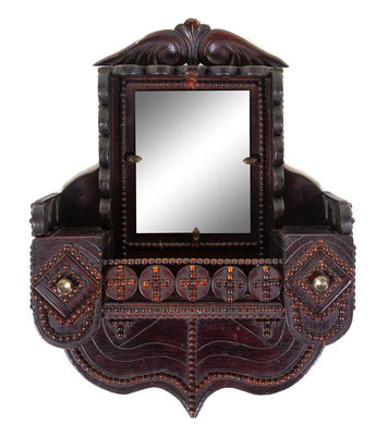 A Tramp Art Hanging Shelf Height 28 x width 20 x depth 9 inches.