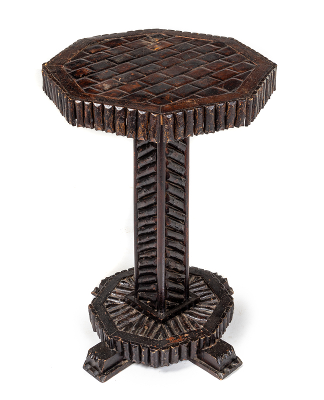 A Tramp Art Side Table Height 28 x width 21 inches.