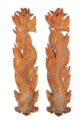 A Pair of Cast Iron Architectural Mounts Height 37 1/2 inches.