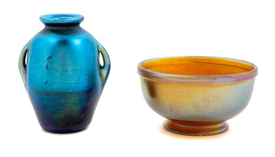 Tiffany Studios, America, Early 20th Century, A Blue Handeled Vessel with a Gold-Tone Bowl