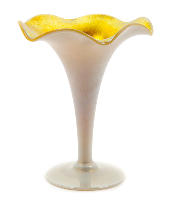 A Steuben Trumpet Vase, American, Early 20th Century, Trumpet Vase with Gold Aurene on Calcite
