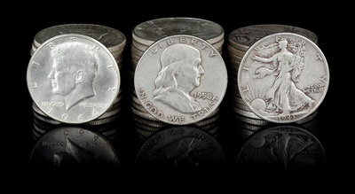 A Collection of Twenty-Seven United States Pre-1964 50c Coins