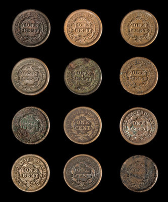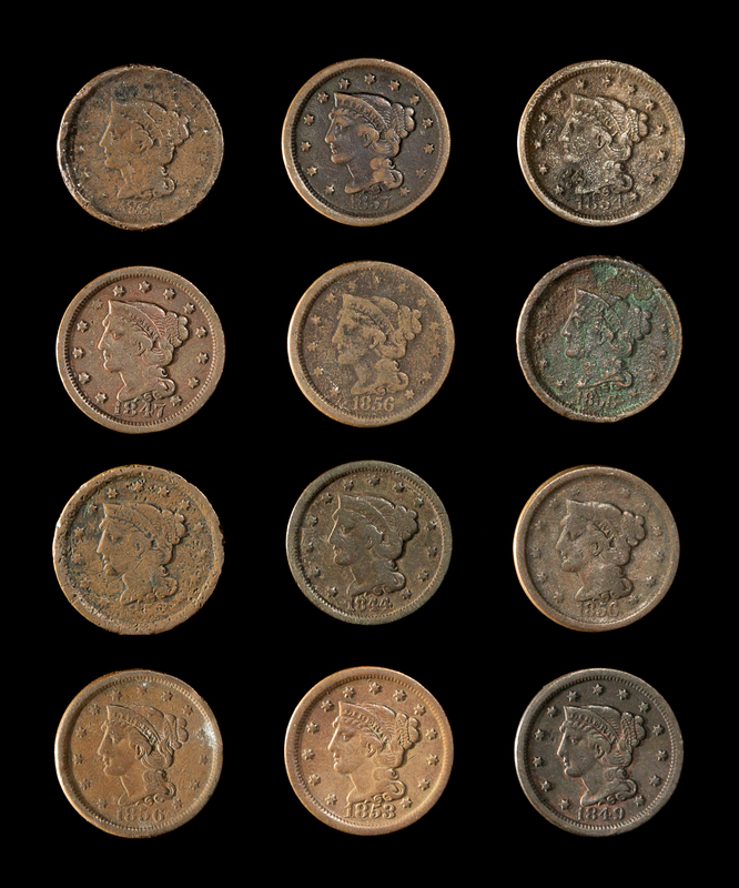 A Collection of Twelve United States Braided Hair 1c Coins