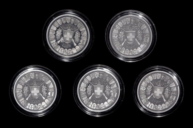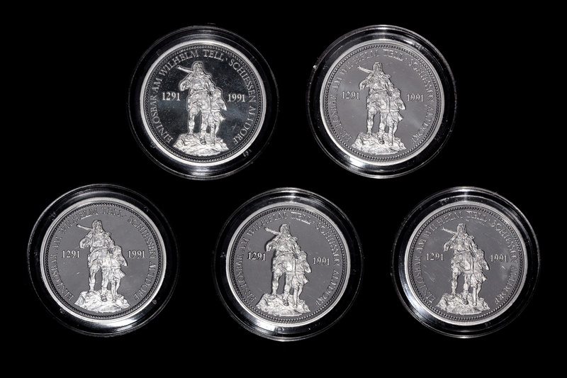 *A Group of Five Swiss Confederation 1986 William Tell 1 oz. Platinum Thalers