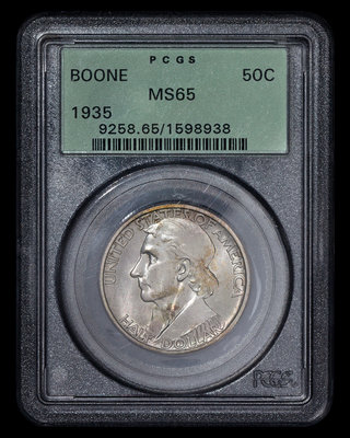 A United States 1935 Daniel Boone Commemorative 50c Coin (PCGS MS65)