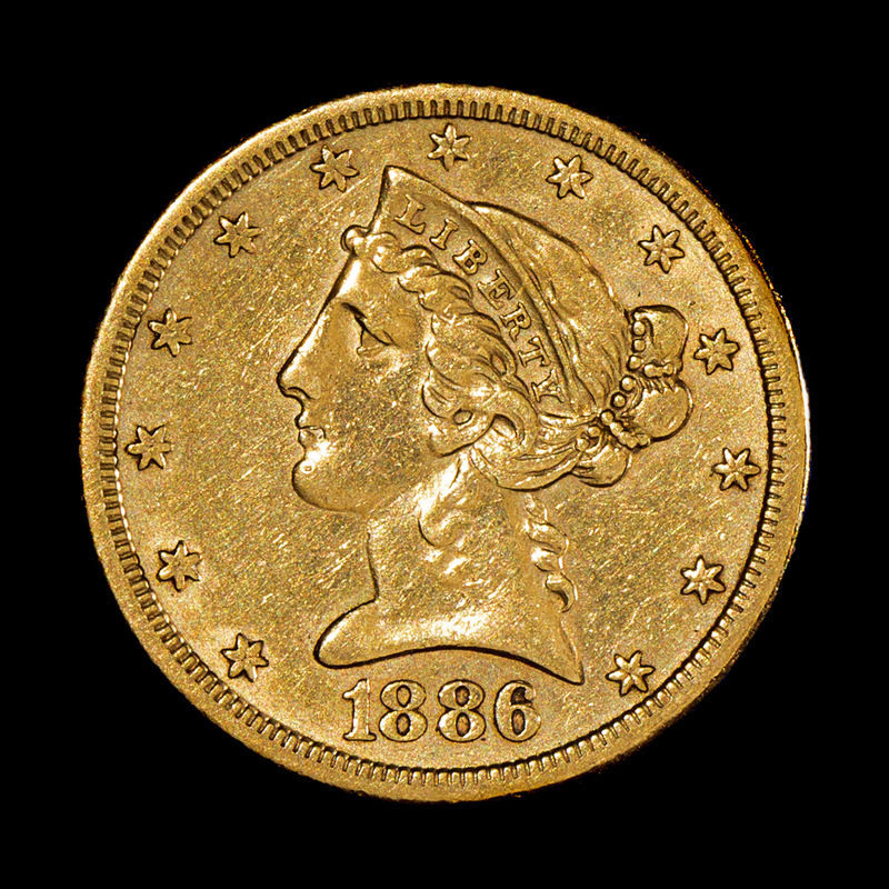 A United States 1886-S Liberty Head $5 Gold Coin