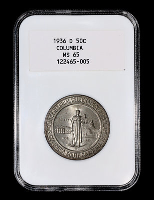 A United States 1936-D Columbia Commemorative 50c Coin (NGC MS65)