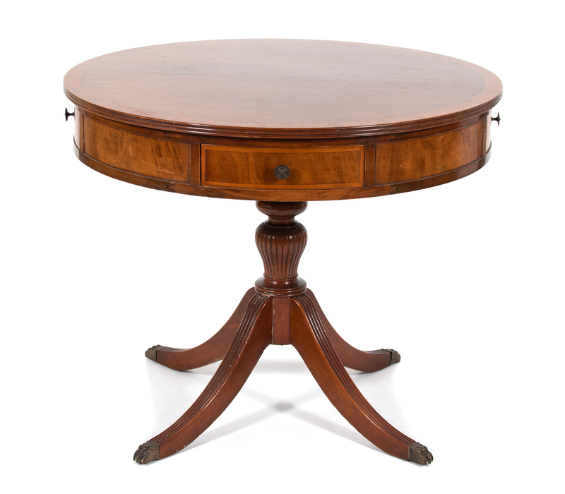 A Regency Style Crossbanded Mahogany Drum Table