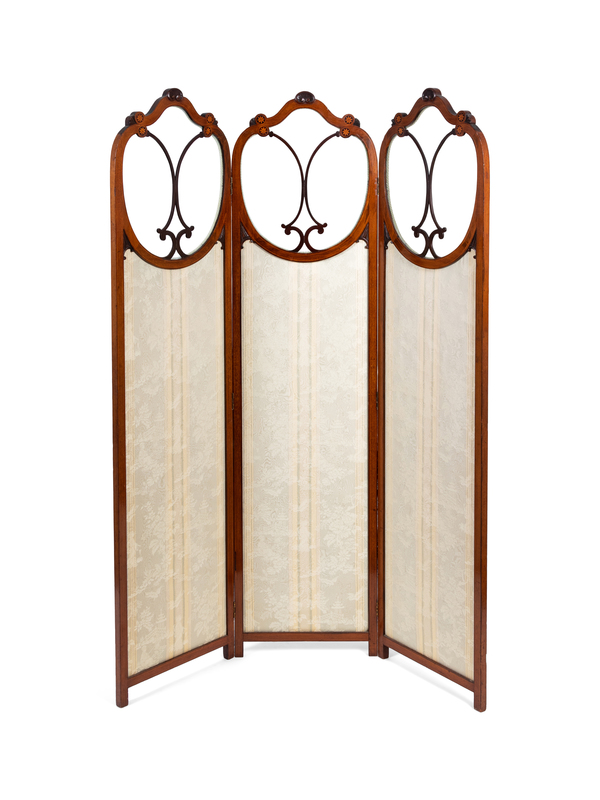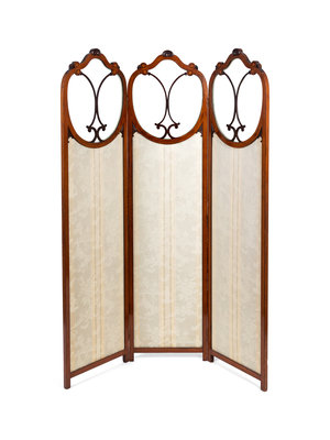 An Edwardian Carved and Inlaid Mahogany Four Panel Floor Screen