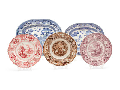 A Collection of Eight Pieces of English Transfer Decorated Plates and Platters