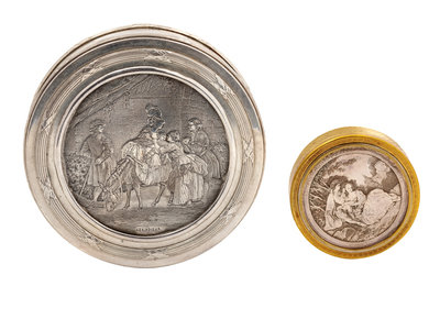 each with engravings, largest titled Les Adieux, and the other titled Les Printemps after Francois Boucher, unmarked.